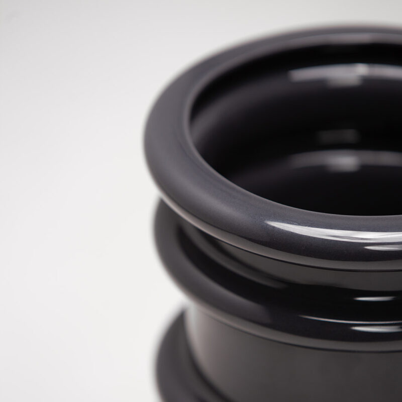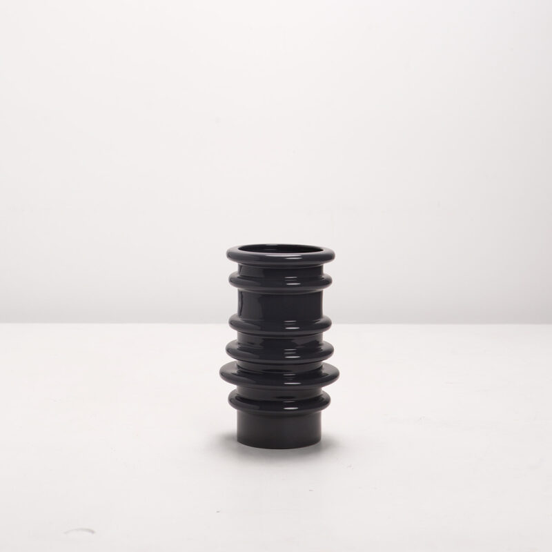 Uniek, handgemaakt design in Donker grijs. De perfecte pot voor een eigentijds interieur. Hoogte 28 cm, diameter 18 cm.